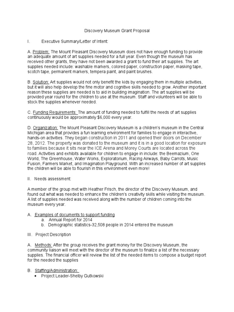 Discovery Museum Grant Proposal Pdf Museum Cognition